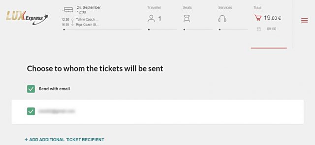 (5)で入力したアドレス宛にチケットが送られてくるので間違えないように。差出人アドレスは「ticket@Lux Express.eu」。ドメイン制限している場合は「luxexpress.eu」を許可しておきましょう。