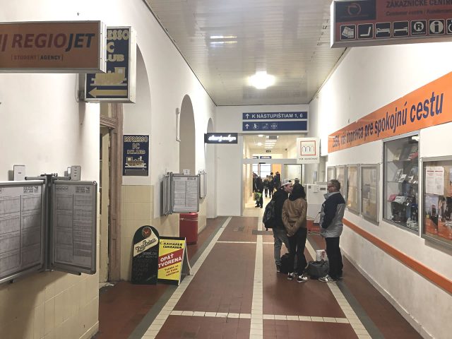 ブラチスラヴァ中央駅の窓口で購入しました。カラフルな売店風の建物がチケット売り場です。