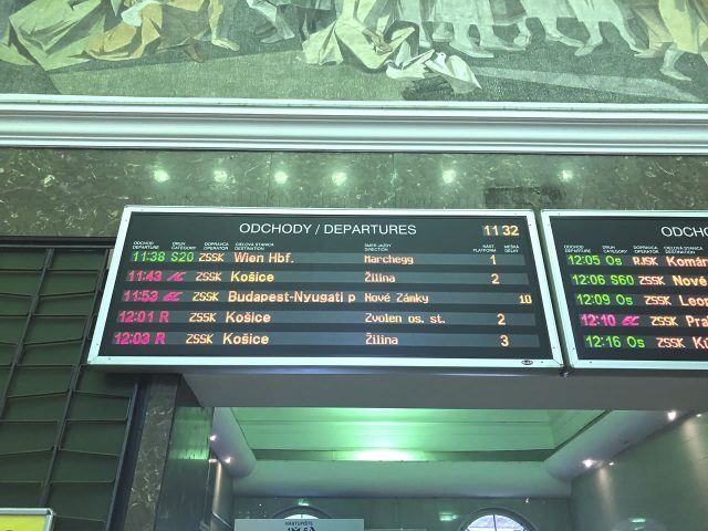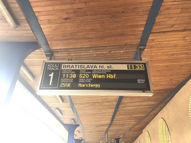 - 出発地: スロバキア ブラチスラヴァ中央駅(Bratislava hlavná stanica)