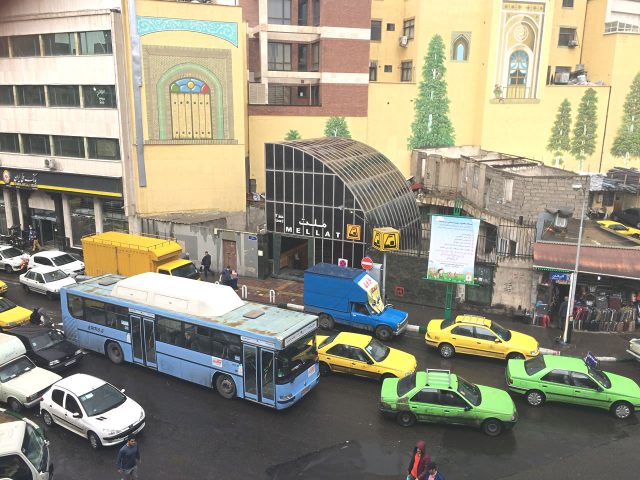 窓からの風景。地下鉄「Mellat駅」が目の前です。