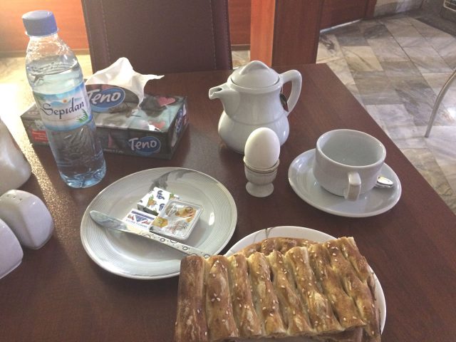 朝食はフロント横のレストラン?で食べました。パン?なのかな。普通においしかったです。※水は自前のもの。