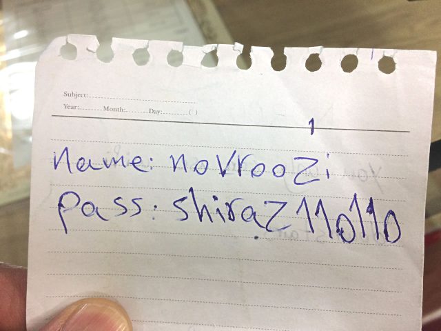 Wi-Fiのパスワードを訪ねたら手書きでくれました。