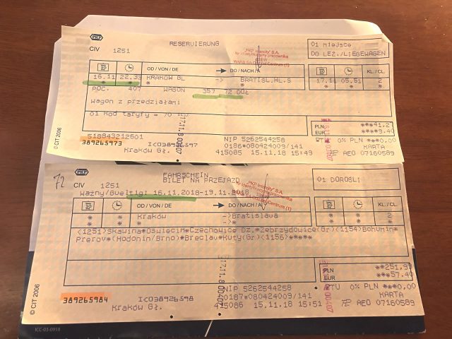 [中・東欧]ポーランド(クラクフ)からスロバキア(ブラチスラヴァ)へ~列車移動