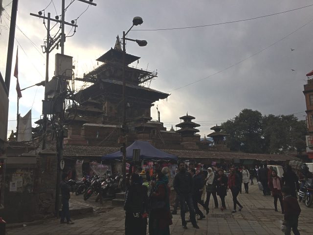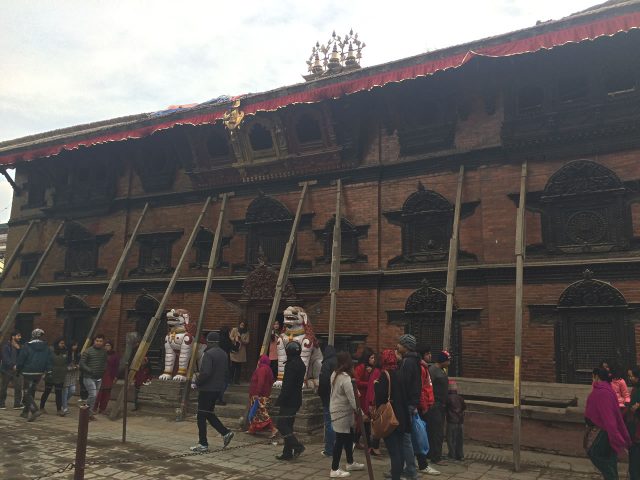 1563年に建立されたお寺。正面にある「プラタップ マッラ王の石柱」には本来王とその家族の像が乗っていましたが崩れてしまっています。