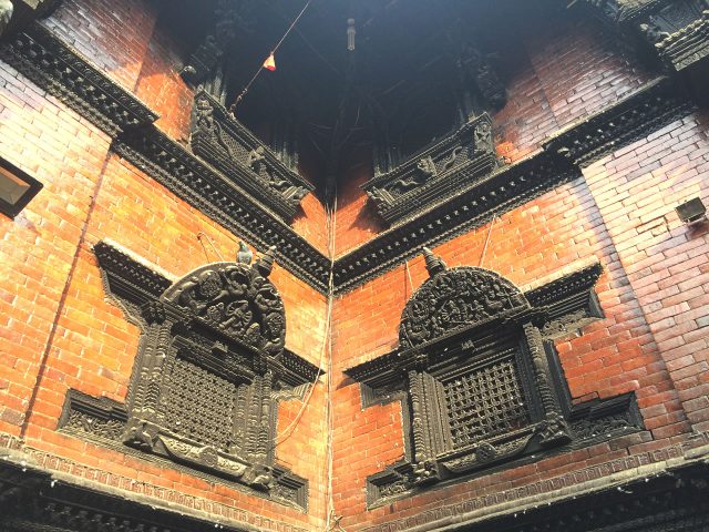 「クマリの館」の窓。細かい装飾が施されています。