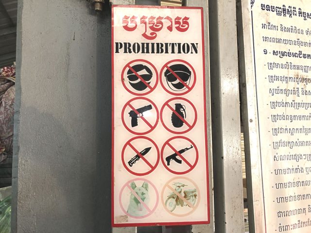 マスク、サングラス、拳銃、手榴弾、ナイフ、自動小銃、ペット、バイクは禁止です。銃と自動小銃をわざわざ分けているのが理解できかねます。そして手榴弾??