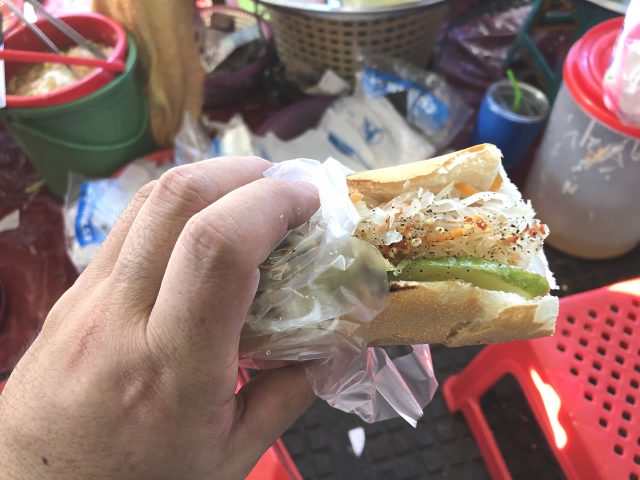 2019年に何店舗か食べたなかでおすすめはこのバインミーのお店。炭火で炙ったフランスパンになます、そしてツナが絶品でした。