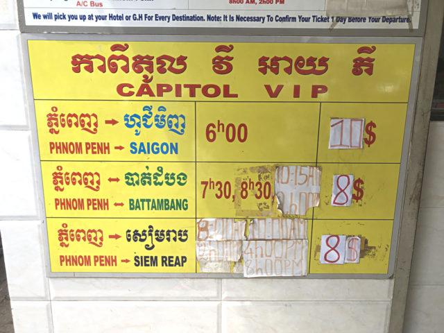 - 出発地: カンボジア プノンペン キャピトルゲストハウス前