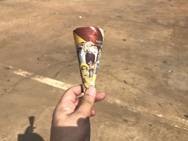 移動中はなるべく食事を取らないようにしているのでアイスを購入。