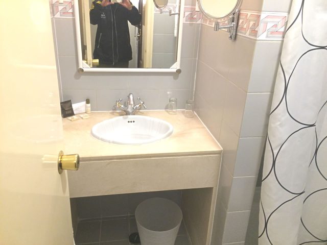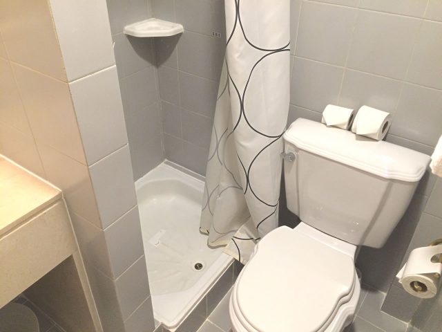 シャワーとトイレ、左に見える台が洗面所。狭いですが清潔でした。