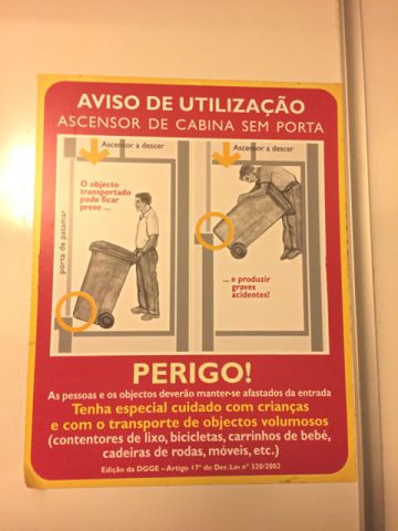 エレベーターで見つけた注意喚起ポスター。世の中にはいろいろな危険があるんですね。