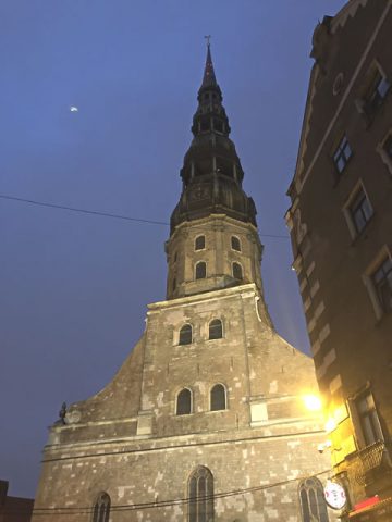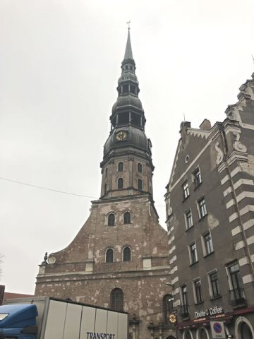 次は「聖ペテロ教会」へ向います。現在塔にはエレベーターが設置されていて、72mの塔上部からはリガの街を一望する事ができます。