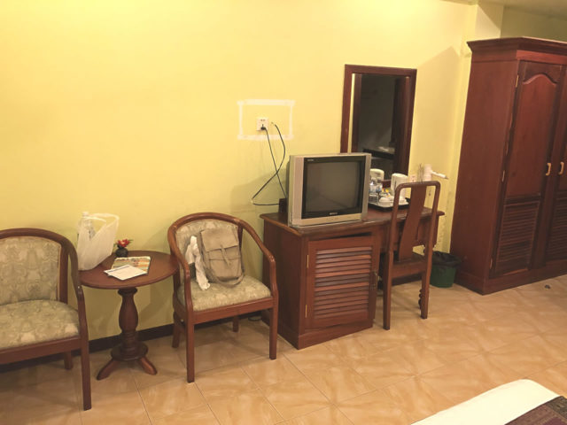 (自分的には)豪華な設備。テレビの下に冷蔵庫もあります。