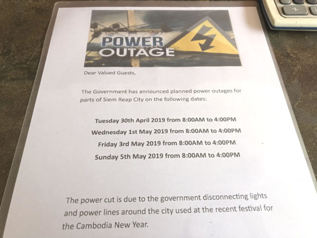 計画停電の情報が置いてありました。カンボジアの電力不足、まだまだ深刻ですね。
