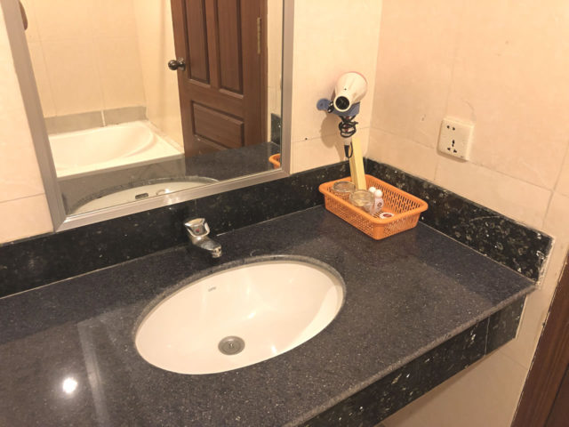 洗面所の様子。まぁ普通です。このクラスでドライヤーがあるのは珍しいですね。