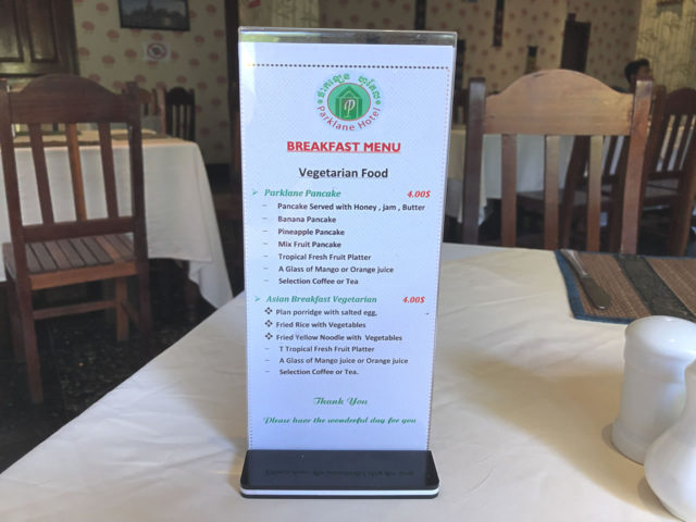 Continental Breakfastを注文。物価の安いカンボジアで4US$払ってこのメニューが出てきたらちょっと残念な内容です。