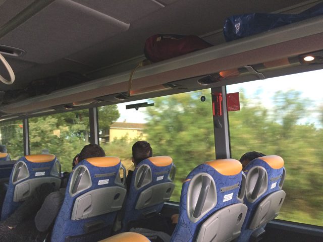 バス内部。主要都市間の移動なのでさすがに混んでます。座席は2×2の4列シートでした。トイレは付いてません。