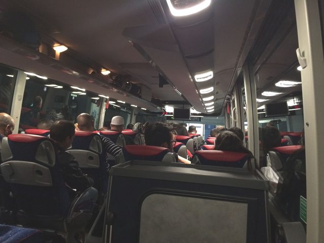 バス内部。座席は2×2の4列シートでした。トイレは付いてません。