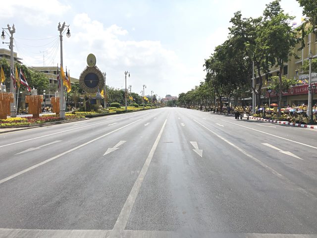 パレードルートのラーチャダムヌーン・クラーン通り。気持ちいいくらい完全に交通規制されていています。
