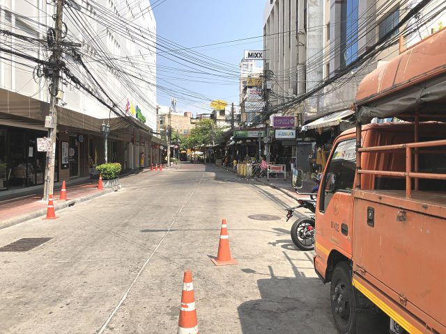 いつもは賑わっているカオサン通り隣のランブトリ通りには誰もいませんでした。