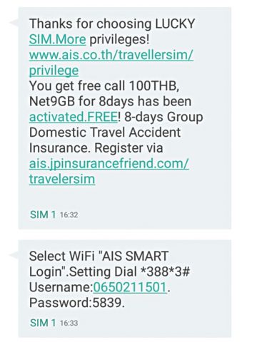 きちんと接続ができるとAISからショートメッセージが届きます。AIS Wi-Fiの接続方法も書かれているのでぜひ活用したいですね。