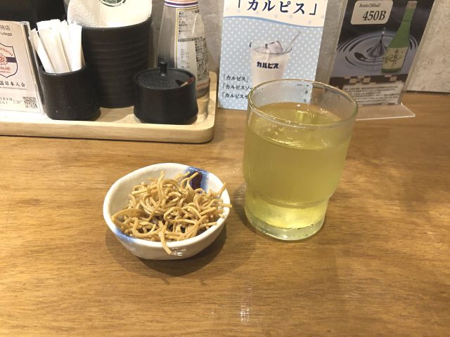 お通し?の揚げたそばはランチタイムでも出てきます。これをポリポリ食べながら料理が出てくるのを待ちます。