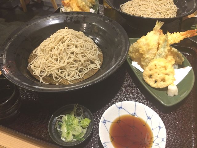 年越しそばとして食べた「てんぷらセット」。天ぷらはサクサクの食感。おそばは3玉です。