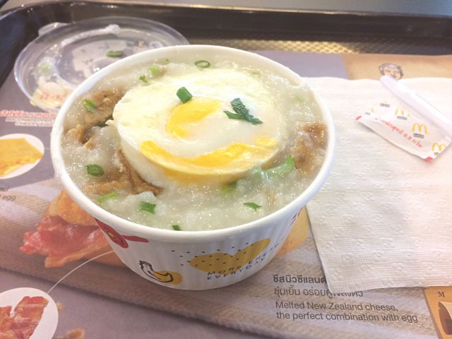[タイ マクドナルド] (やっと)朝マックでお粥を食べてきた