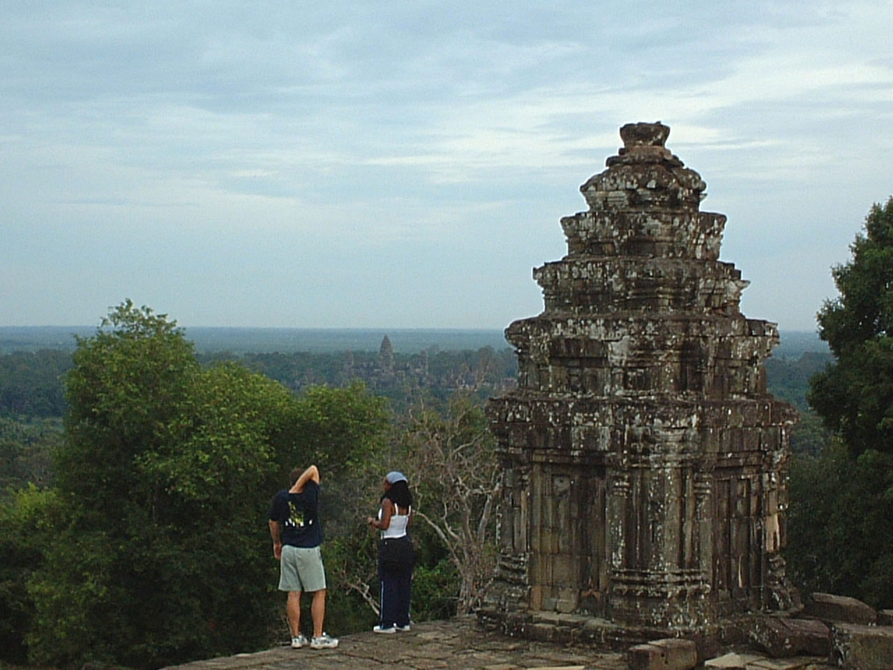 「パンテアイ・クディ」「スラ・スラン」「プラサット・クラヴァン」を見て、今日のとりは「プノンバケン」。昨日は「アンコール・ワット」からのサンセット、今日は「アンコール・ワット」を遠く眺めながらのサンセット。どちらも幻想的でした。