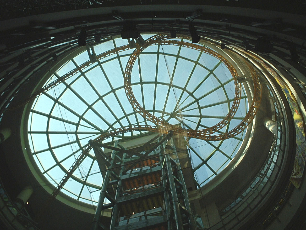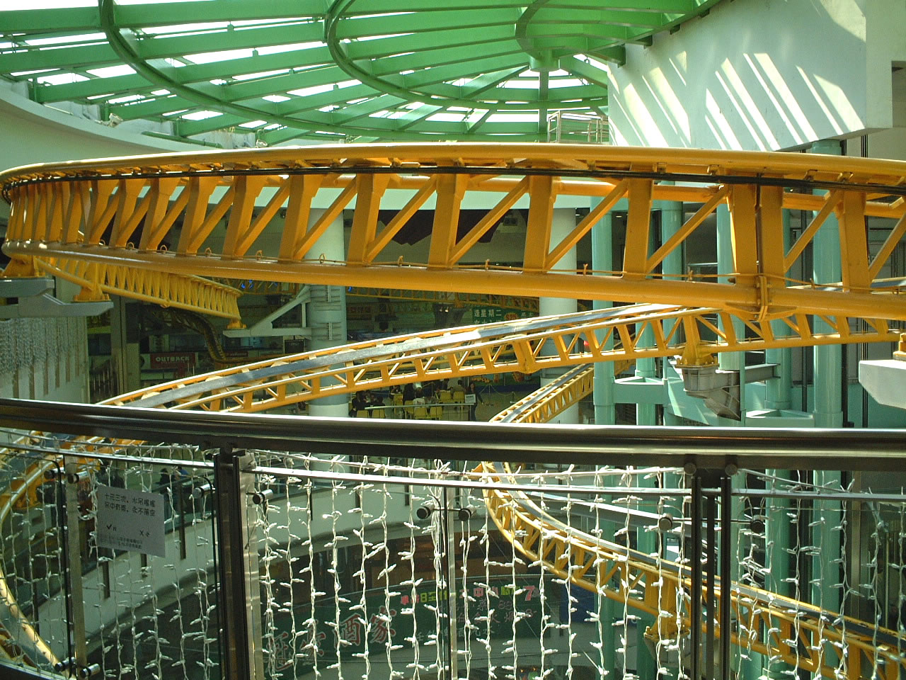 気分を変えるため、近くのデパート西九龍中心(ドラゴンセンター)にジェットコースターを乗りに行く。このジェットコースターは、デパートの吹抜け部分を走っており(乗り場は9階)、その恐ろしくちゃっちい姿と、整備大丈夫?という心配と、1階までダイレクトに見えるので、浅草花やしきのジェットコースター並みのスリルがあった。