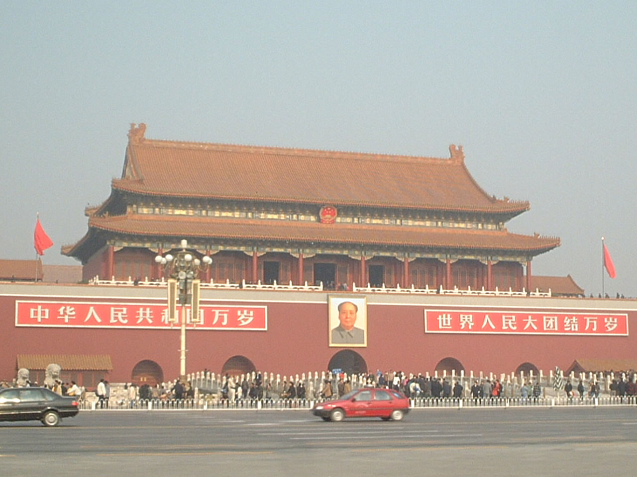 うーん、広い。正面にある毛沢東の肖像が「まさに中国」という感じ。ここはもちろん、1989年6月4日に「天安門事件」があった場所であるが、そのような面影はもう無く、多くの観光客と凧を上げている地元の人達でいっぱいだった。