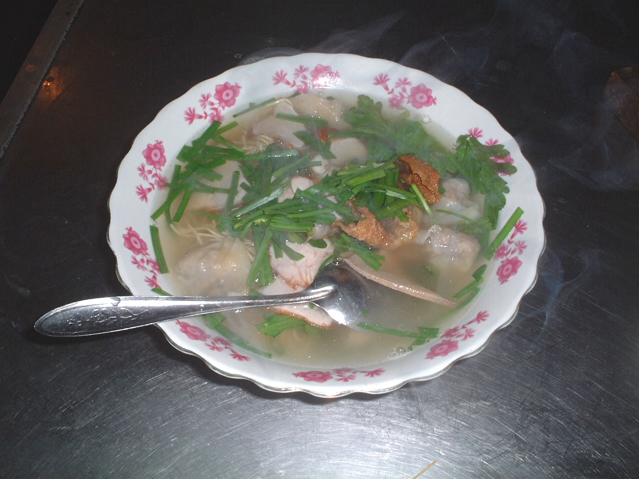とりあえずとても疲れているので少し休憩。時間は17時。町歩きをかねて夕食を取りに出る。細い路地には食料品を売る屋台が並びとてもにぎやか(ここは鳥インフルエンザで死亡者がでた場所として後日ニュースで見ることになる)。屋台をのぞきながら歩いていると、ホアン湖の畔に出る。そこで湖を眺めながら一服。対岸の街灯や、所々にあるイルミネーションがとてもきれい。