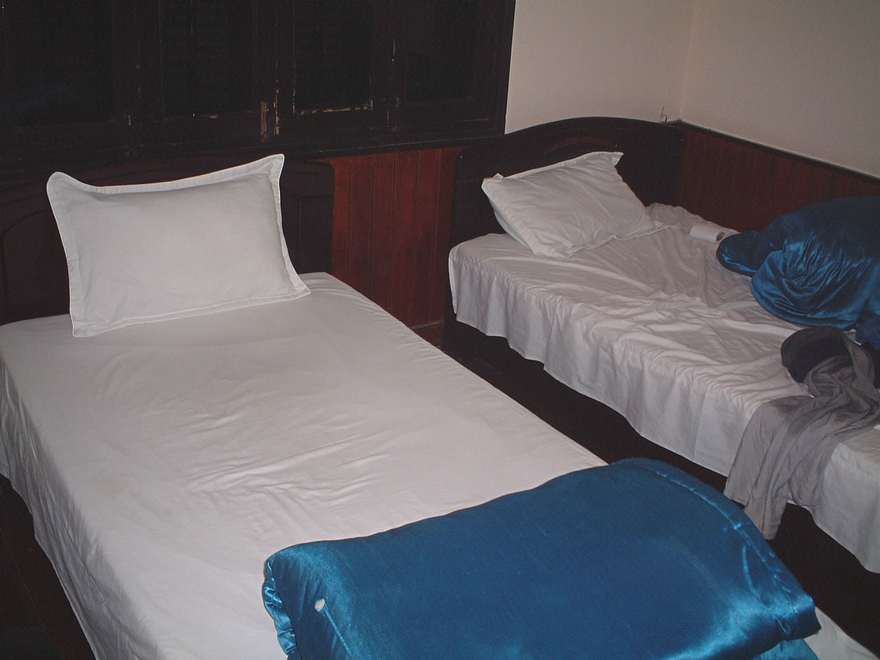 1時間後、やっと部屋に案内される。ダブルでエアコン、ファン、TV、温水シャワー、トイレがついてそこそこ清潔。値段を聞くと10US$だって。交渉して7US$にしてもらうが、ここで値切ったことが後々大変なことになる事を今はまだ知るすべもない。