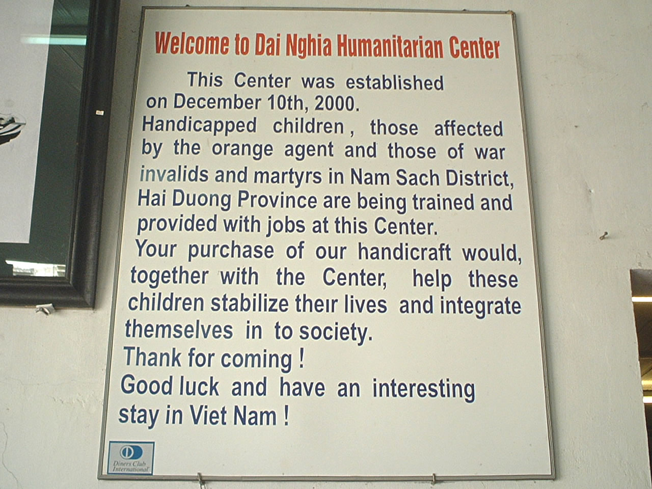 10:30頃最初の休憩。そこはよくある食堂兼みやげ物屋であったが、看板を読んでみると「ここはハンディキャップを持つ子供たちの自立支援を支援する施設である」と書いてあった。40人ほどの子供たちが鮮やかな刺繍を施していた。