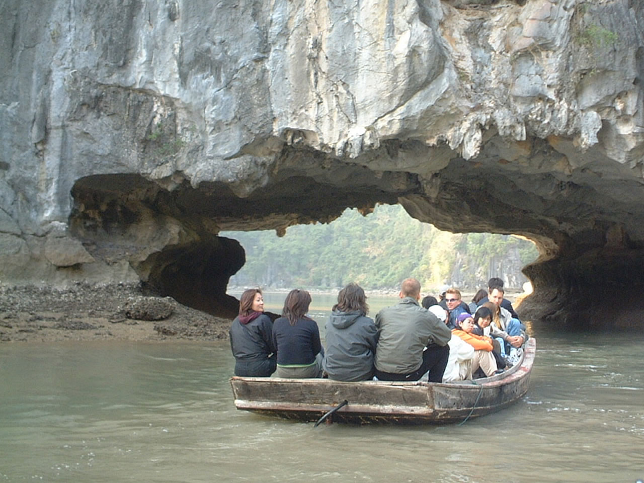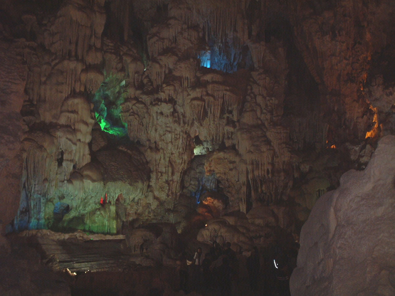 船に乗り換え2ヶ所行く予定の洞窟の1つティエンクン洞に到着。地下マニアの血がとても騒ぐ。幻想的にライトアップされた洞窟内は、日本ではお目にかかれない高さと奥行き。さらに同じ島にある別の洞窟(名前は失念)も広さは十分な上、地表から天井まで伸びる柱の様な鍾乳が小船に乗り換えて進むこれまた神秘的でとても満足。