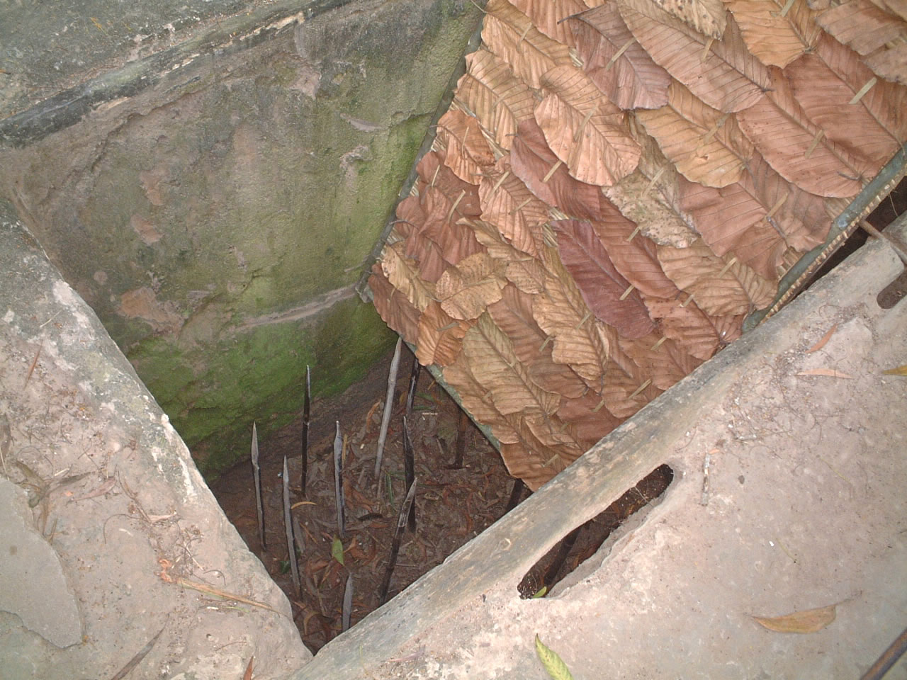 予備知識のビデオ(英語のみ)を見た後、密林の中へ入っていく。まず現れたのは、ブービートラップの数々。ただ竹やりが地面に刺さっている落とし穴から、落ちた後両側から竹やりが突き刺さるちょっと凝ったものまで多数紹介されていた。どれも原始的な分簡単に死ねそうにないので恐ろしい。