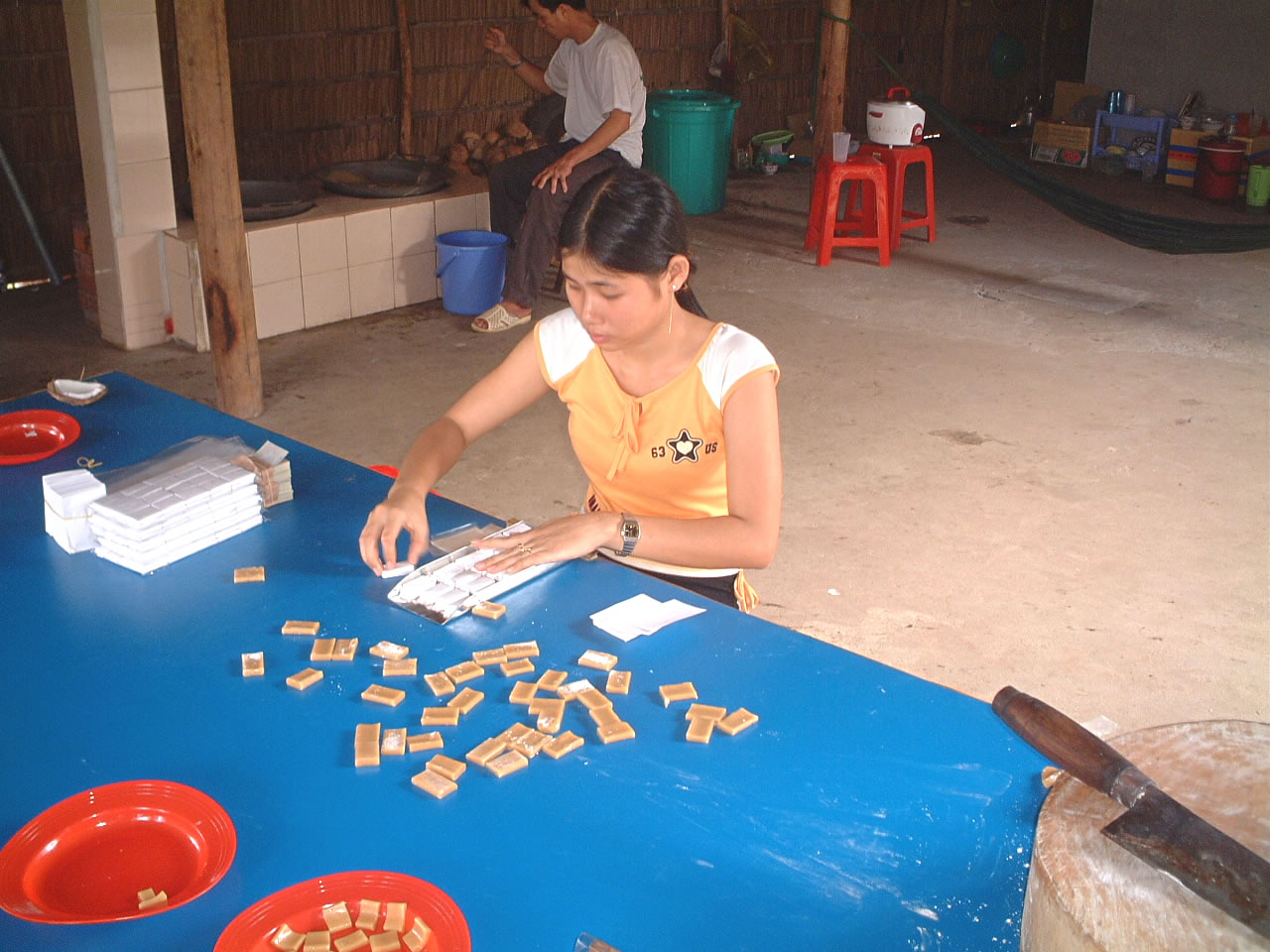 「カイベ」という街へ出た後、ボートに乗り込みメコンクルーズ。水上マーケットを見た後、ライスペーパーや米菓子作りを見学。みんな手作りなんだね。小さな子が、慣れた手つきで作業をするのを感心しながら眺める。出来立てをいただいたが、やっぱりおいしかった。