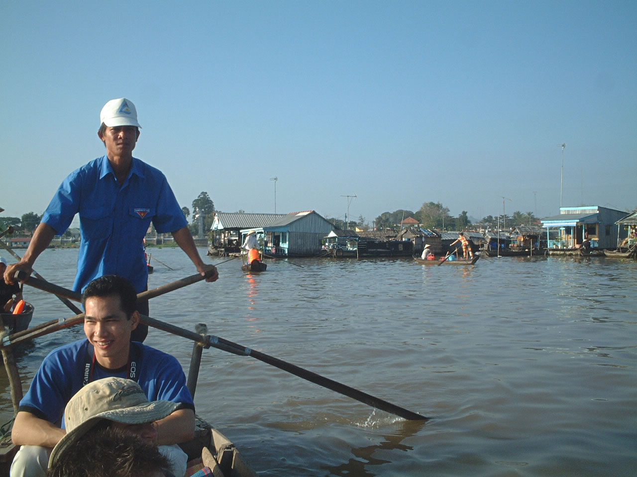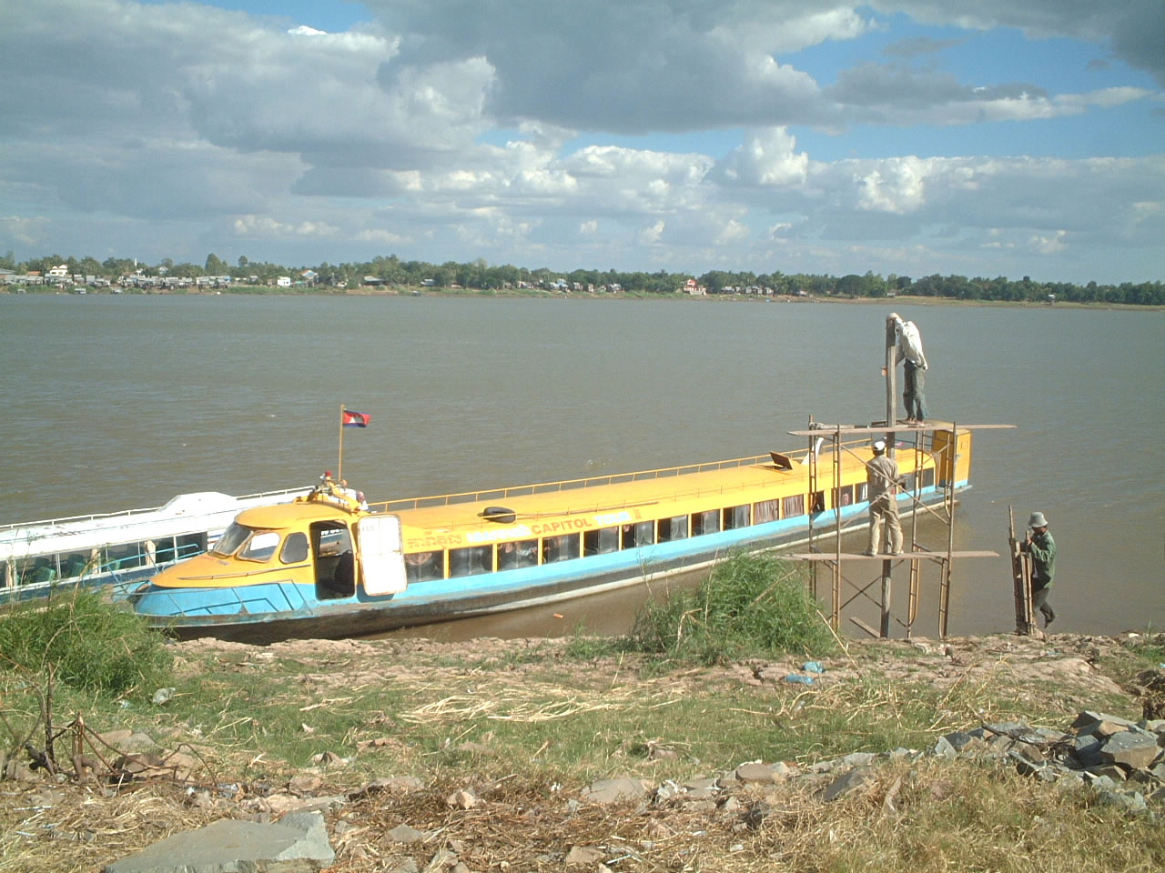 その後プノンペン行きのグループは10人乗りほどのモーターボートに乗り換えメコン川を北上、国境を目指す。次第に川幅も広くなり、両岸には家が立ち並び手を振ると振り返してくる子供達、悪くない時間。国境を越える
