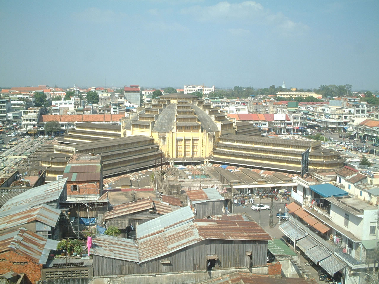屋上まで上がり外へ出て市街を一望する。トンレサップ川まで見えるいい眺め。さらにセントラルマーケット側にある飲食コーナーの様な所からはセントラルマーケットを下に見ることが出来た。
