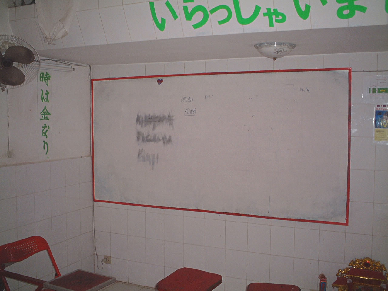 違う道で宿へ戻る途中、日本語学校を見つけたので、見学させてもらう。ふらふら歩いていると、いろいろなものを見つけられるのが楽しい。教室に掲げてあった標語は「時は金なり」。うーん、深い。