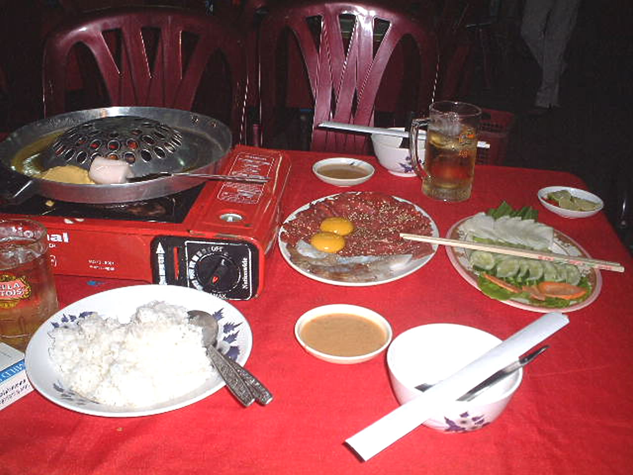 夕食は豪華に焼肉。初カンボジアの社長にプノンペンの見所(あるのか?)を教える。複数だと食事もよりおいしい。今日も良く食べた、飲んだ、寝よう。