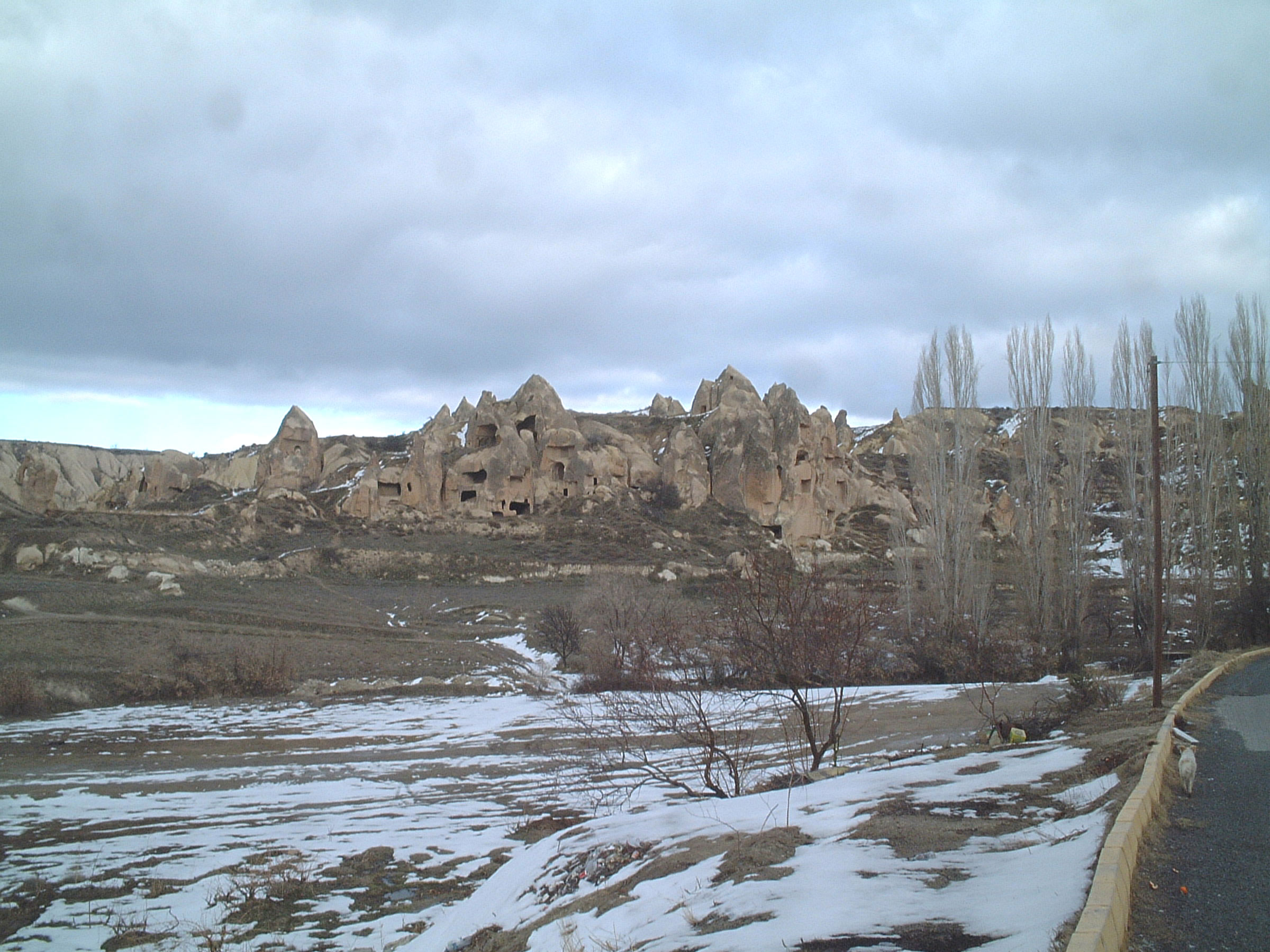 軽く食事をした後なんやかんやしている内に15時を回ったので近くの「ギョレメ屋外博物館」へだけ行く事にする。約1kmの道のりだけど、解けかけの雪が邪魔で歩きにくい。