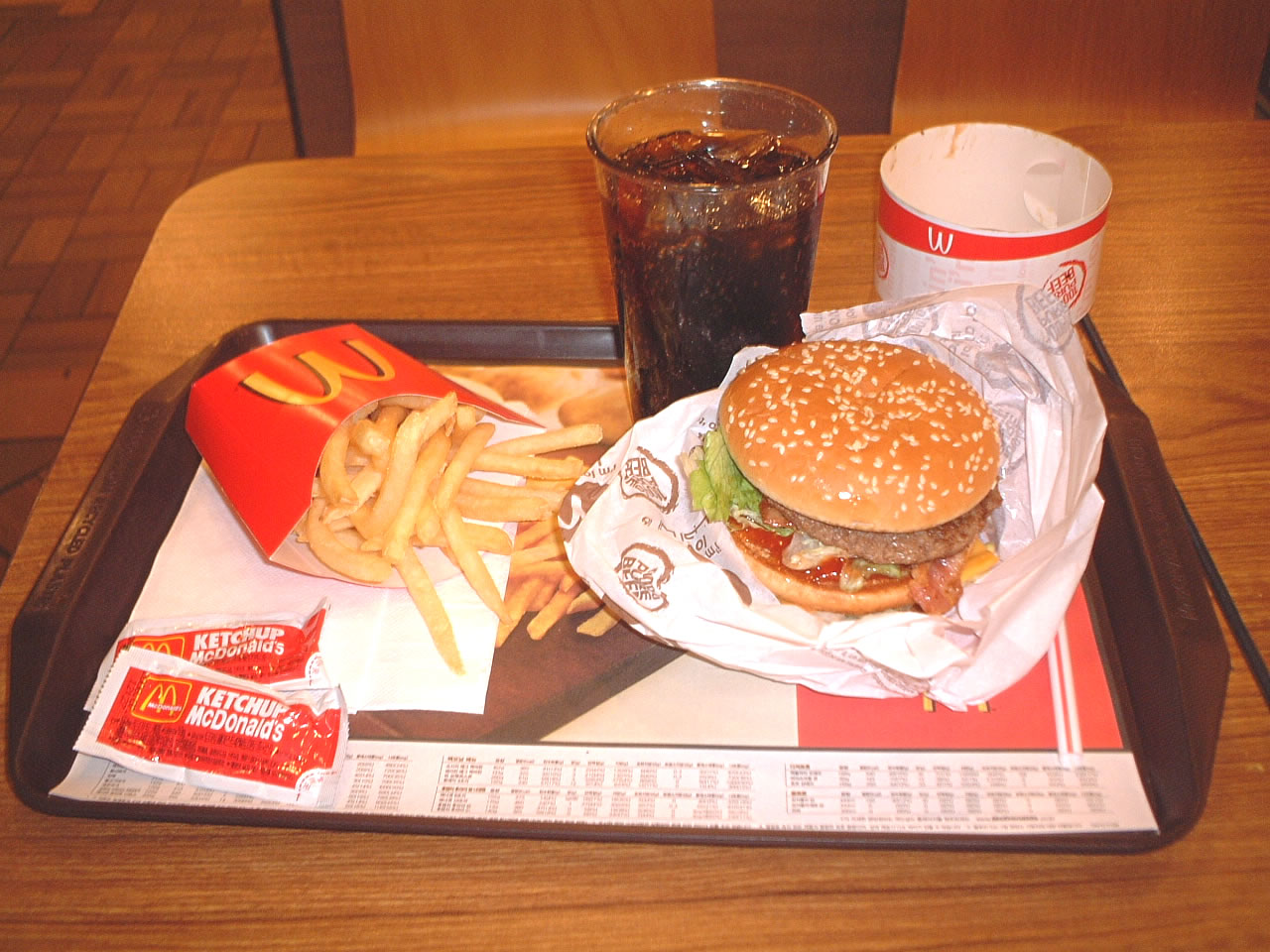 屋台でつまみ食いをしマックで夕食。「デラックスベーコントマト」、4,900ウォン。ビックマックより大きい。周りを見渡すとマック難民多いなぁ。