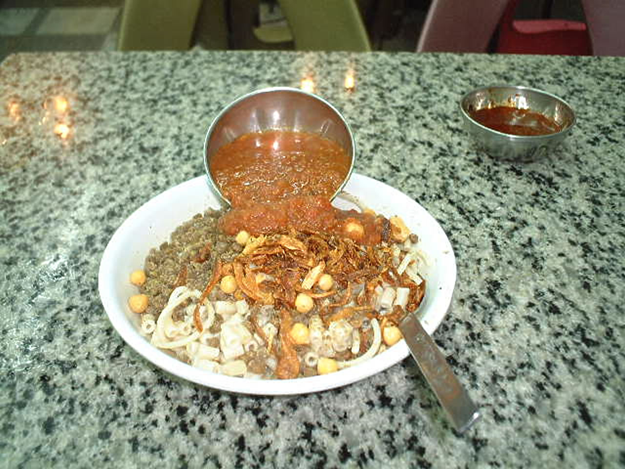 今日はまだ何も食べていないので宿を探す前にコシャリを食べる。味付けはアスワンの方が好み。