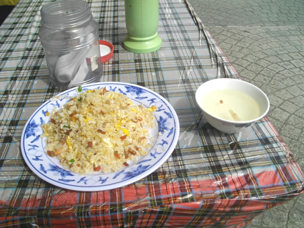 朝食は近くの店でチャーハン。まずまずの味。おかわり自由のスープ付きなのも嬉しい。80元なり。