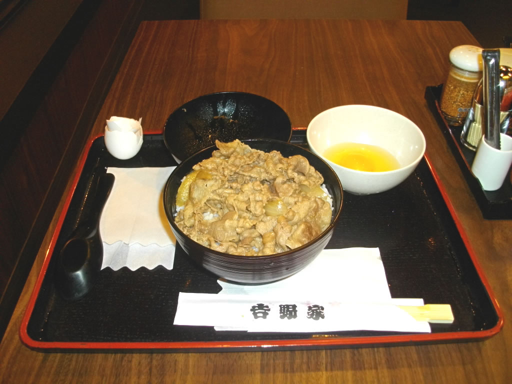最後の夕食は何を食べようかな、と30分程うろうろするが、これは!という所が無かったので気になっていた吉野家で食べる。日本の吉野家でよく見るカウンター中心の店構えでは無く、他のファーストフードと同様、入り口カウンターで注文した後すきな席で勝手に食べる、という方式だった。