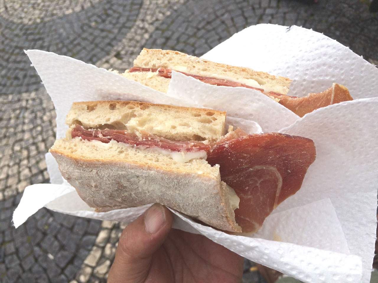 ロシオ広場で昨日も食べた生ハムサンドの朝食。そして今日の宿「Ever Lisboa City Center Hotel」へ移動。チェックインは14時からなので荷物を置かせてもらう。