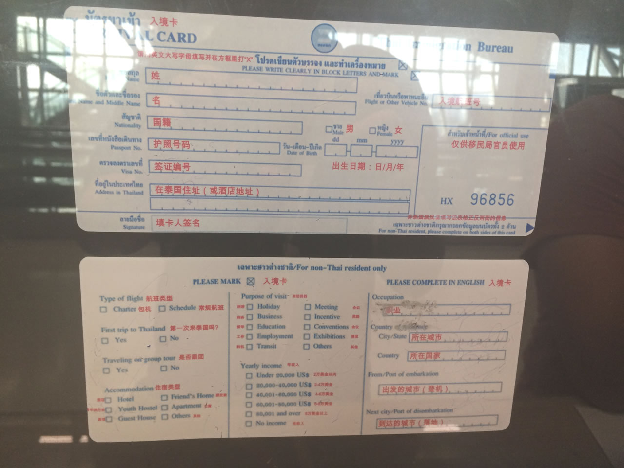 入国カードの書き方サンプルを写真にとり、10分程、係を探してそれを見せてやっと貰うことができた。