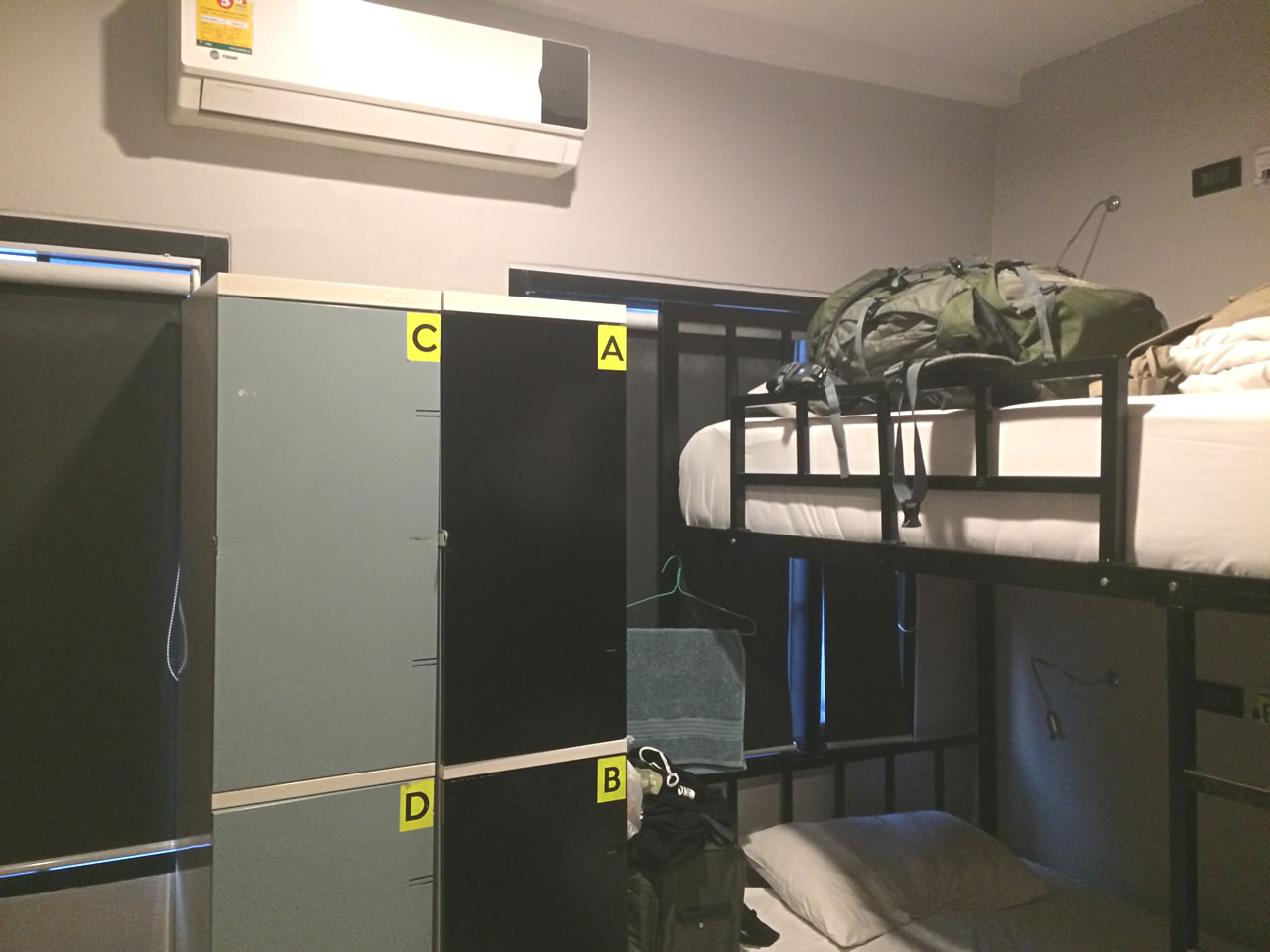 久しぶりのドミ。エントランスとか共有スペースとかオシャレだね。ベッド1つ1つにコンセントが付いているのが今風でとても便利でした。