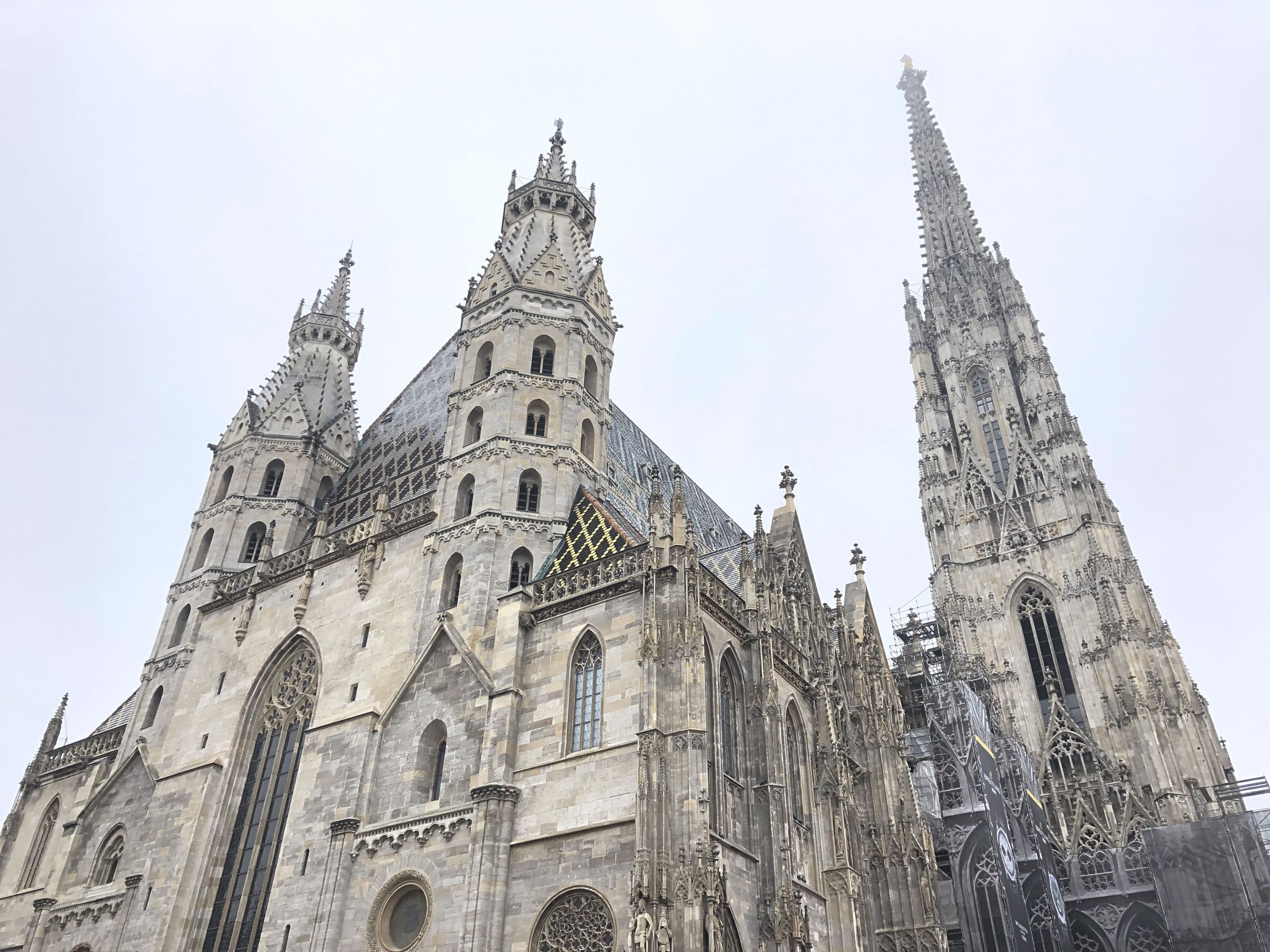 12:00頃チェックアウト。17:10のフライトなので15:00には空港に着きたい。で、ここから空港までは1時間弱なので2時間観光ができる計算。ホテルに荷物を置かせてもらい、歩いて「シュテファン大聖堂」に向かう。外は雨だがホテルで傘を貸してもらえた。